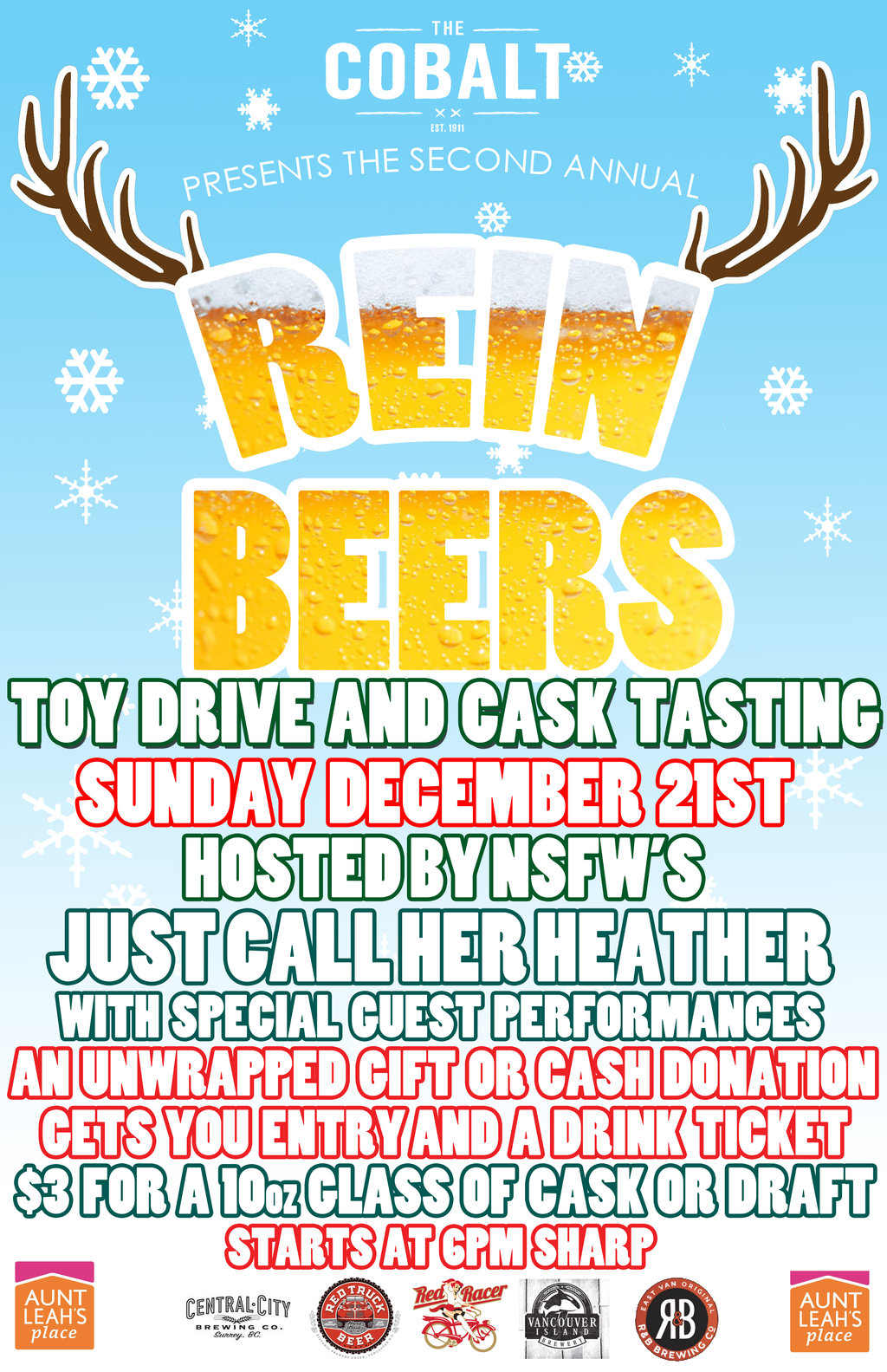 Reinbeers is returning on SUN.DEC.21! This year will be hosted by NSFW's Just Call Her Heather, with special special guest performances from a few of her friends!