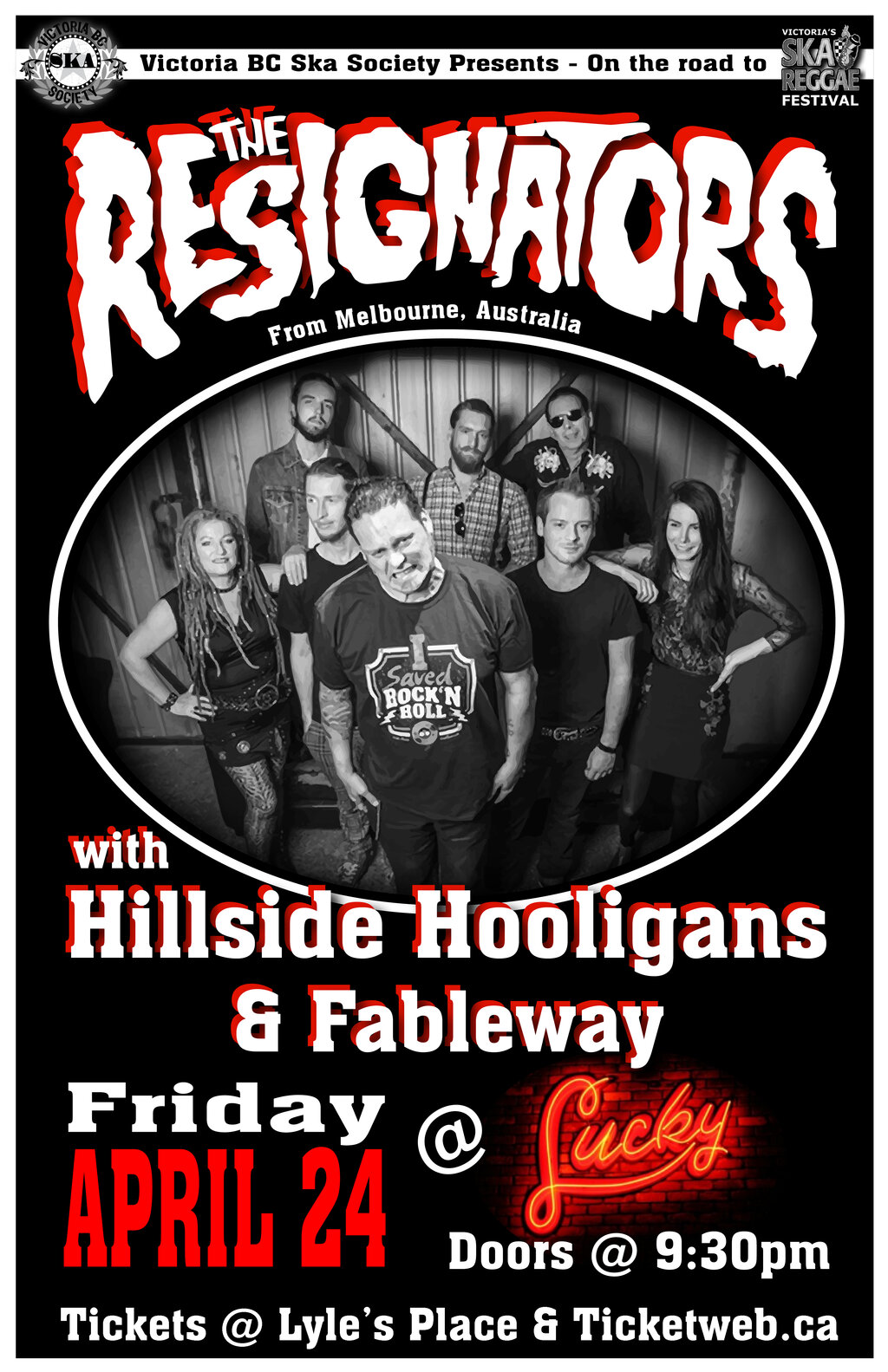 Get ready for more good times with Melbourne, Australia's The Resignators with our Island's own Hillside Hooligans and Fableway. This show is a family reunion of our ska family down under meeting our reggae, punk and ska family from west coast Canada. You may have remembered that The Resignators played at the Victoria Ska Festival in 2011 and 2013 opening for The Planet Smashers at Market Square and with Rude City Riot at Lucky Bar. If you didn't see them you're in for a treat with this edition of our On the Road to Ska & Reggae Festival.