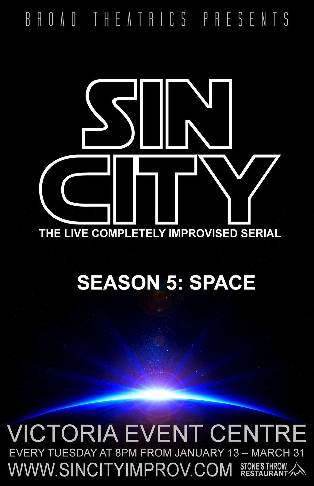 Broad Theatrics presents the 5th hilarious season ofSin City the Live Improvised Serial - set in SPACE!