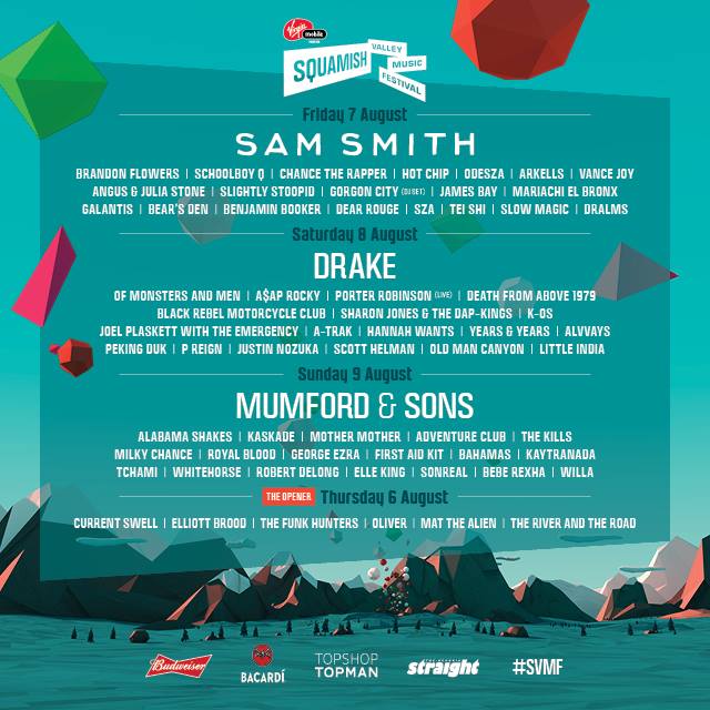 Thu. August 6th 2015 Squamish Music Festival Squamish BC $300