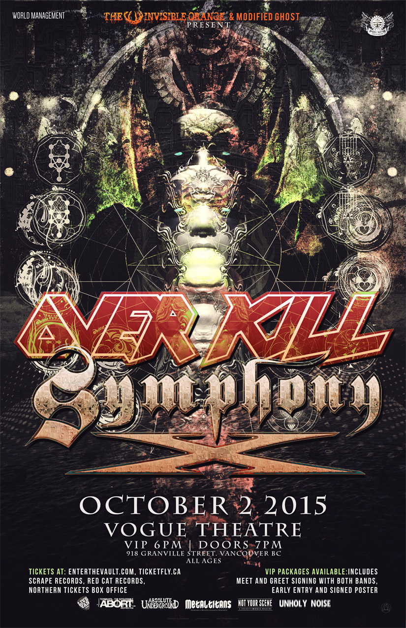 The Invisible Orange in conjunction with World Management and Foo King Entertainment are proud to announce that Thrash Titans OVERKILL and Progressive Metal Masters SYMPHONY X will be combining forces to CO-HEADLINE on tour this fall, stopping in Vancouver on October 2 at The Vogue Theatre.