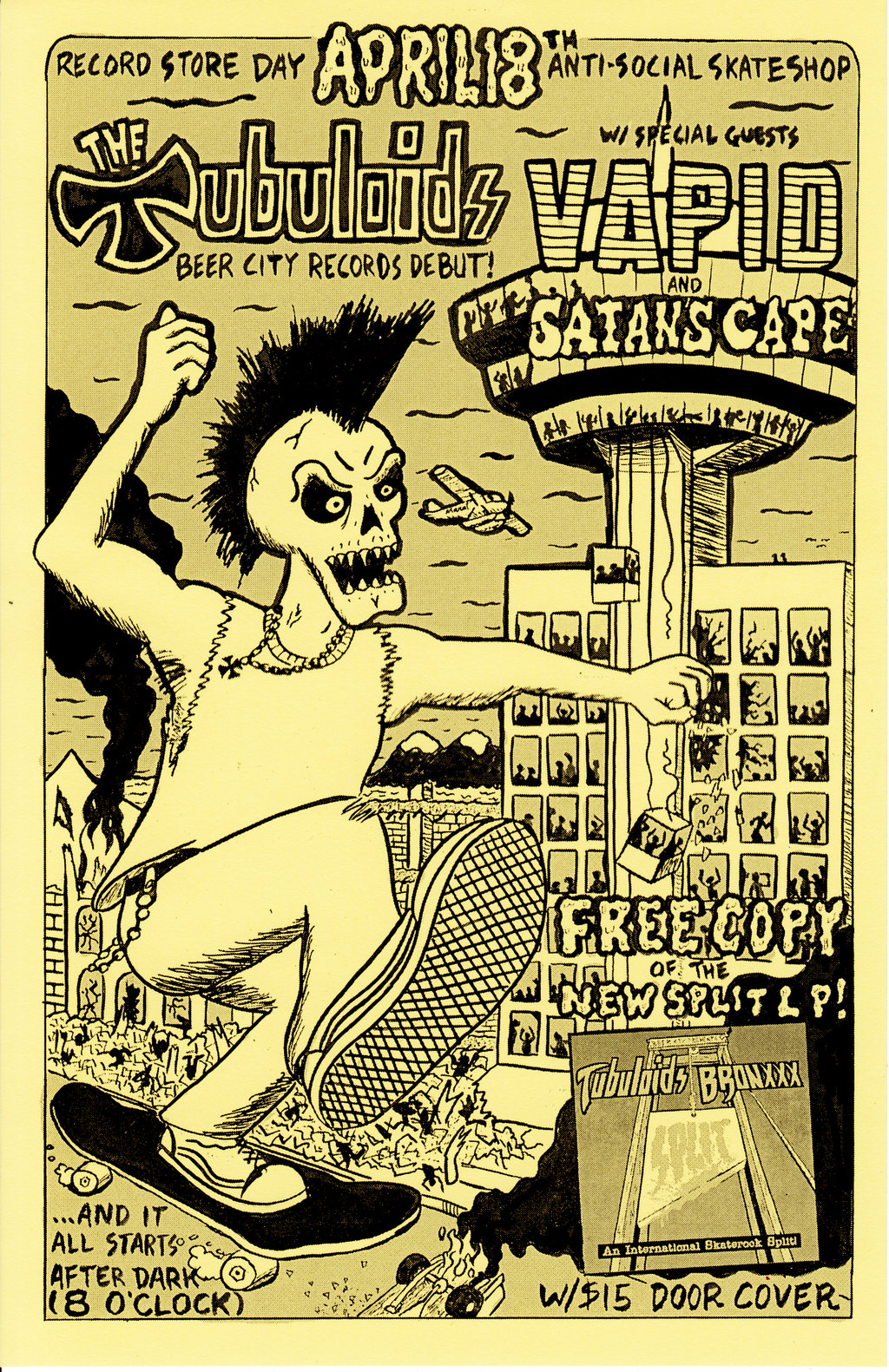 THE TUBULOIDS BEER CITY RECORDS DEBUT!: The Tubuloids, Vapid, Satan's Cape @ Antisocial Skateboard Shop Apr 18 2015 - Feb 6th @ Antisocial Skateboard Shop