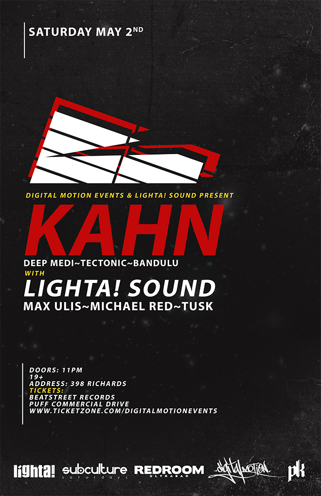 Hailing from Bristol (U.K) and having grown up immersed in the city's renowned culture of sound systems, punk rock and hip hop; Kahn is at the forefront of the new wave of Bristol producers and DJs.
