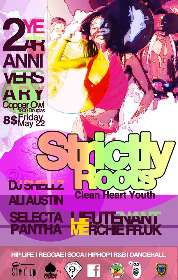 Strictly Roots & Clean Heart Youth want to Celebrate their 2nd Anniversary with you FRIDAY MAY 22 at Copper Owl. Lt. Merchie returns from the U.K. with a brand new sound and brand new vibe...your old favs Dj Shellz , Selecta Pantha and Ali "Six Milli" keep it in tune with the best in dancehall, hip hop, rnb and hiplife.