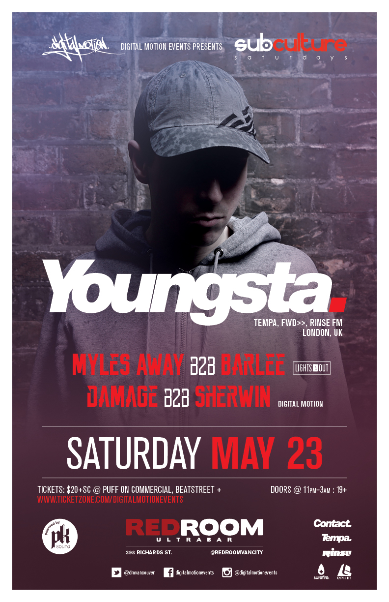 SUBculture Saturday's Feat: Youngsta, Damage b2b Sherwin, myles AWAY B2B Barlee  @ The Red Room May 23 2015 - Dec 23rd @ The Red Room