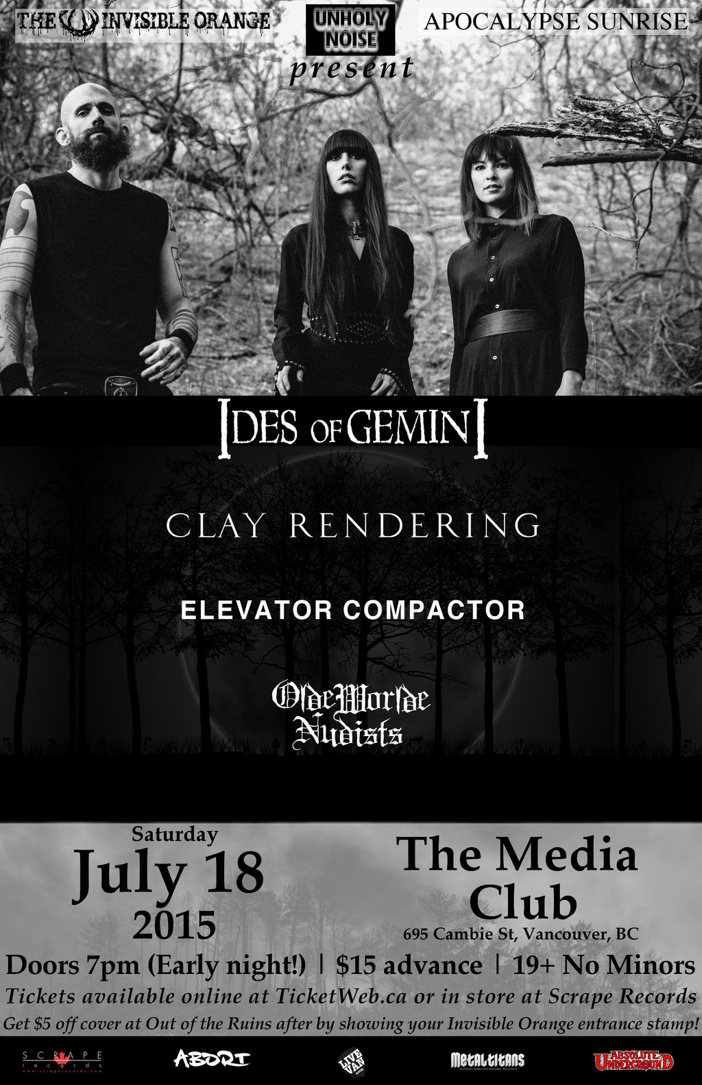 Ides of Gemini, Clay Rendering, Elevator Compactor, Olde Worlde Nudists @ The Media Club Jul 18 2015 - Dec 22nd @ The Media Club