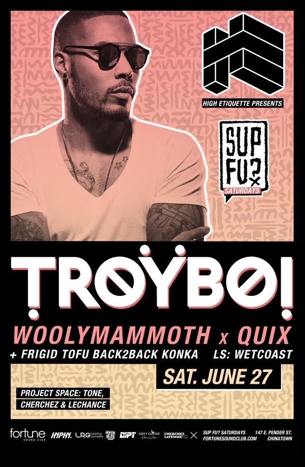 POSTPONED UNTIL NOVEMBER 7th: TroyBoi (POSTPONED  to Nov 7), Woolymammoth, Quix, KONKA, Frigid Tofu @ Fortune Sound Club Jun 27 2015 - Feb 4th @ Fortune Sound Club