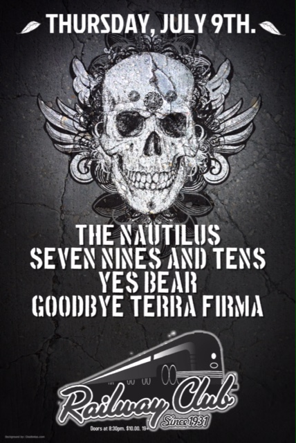 The Nautilus, Seven Nines and Tens, Yes Bear, Goodbye Terra Firma @ Railway Club Jul 9 2015 - Feb 7th @ Railway Club