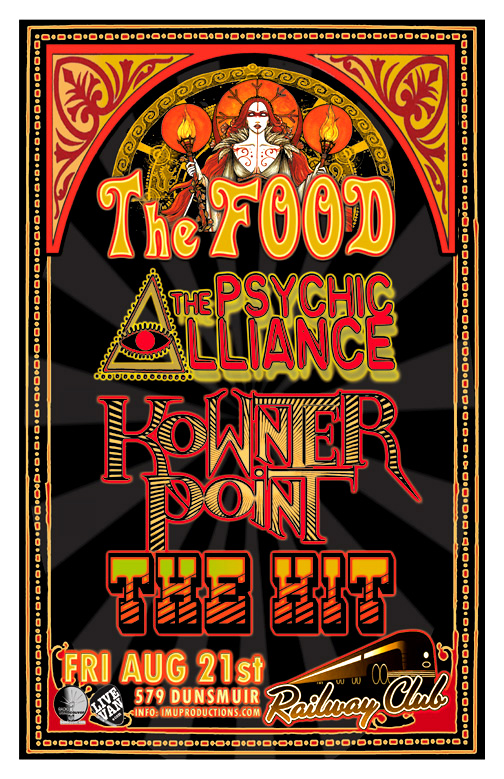 . Friday, August 21st IMU presents The FOOD, The PSYCHIC ALLIANCE, KOWNTERPOINT & The HIT @ The Railway Club, 579 Dunsmuir . Show 9:30pm / $10 cover