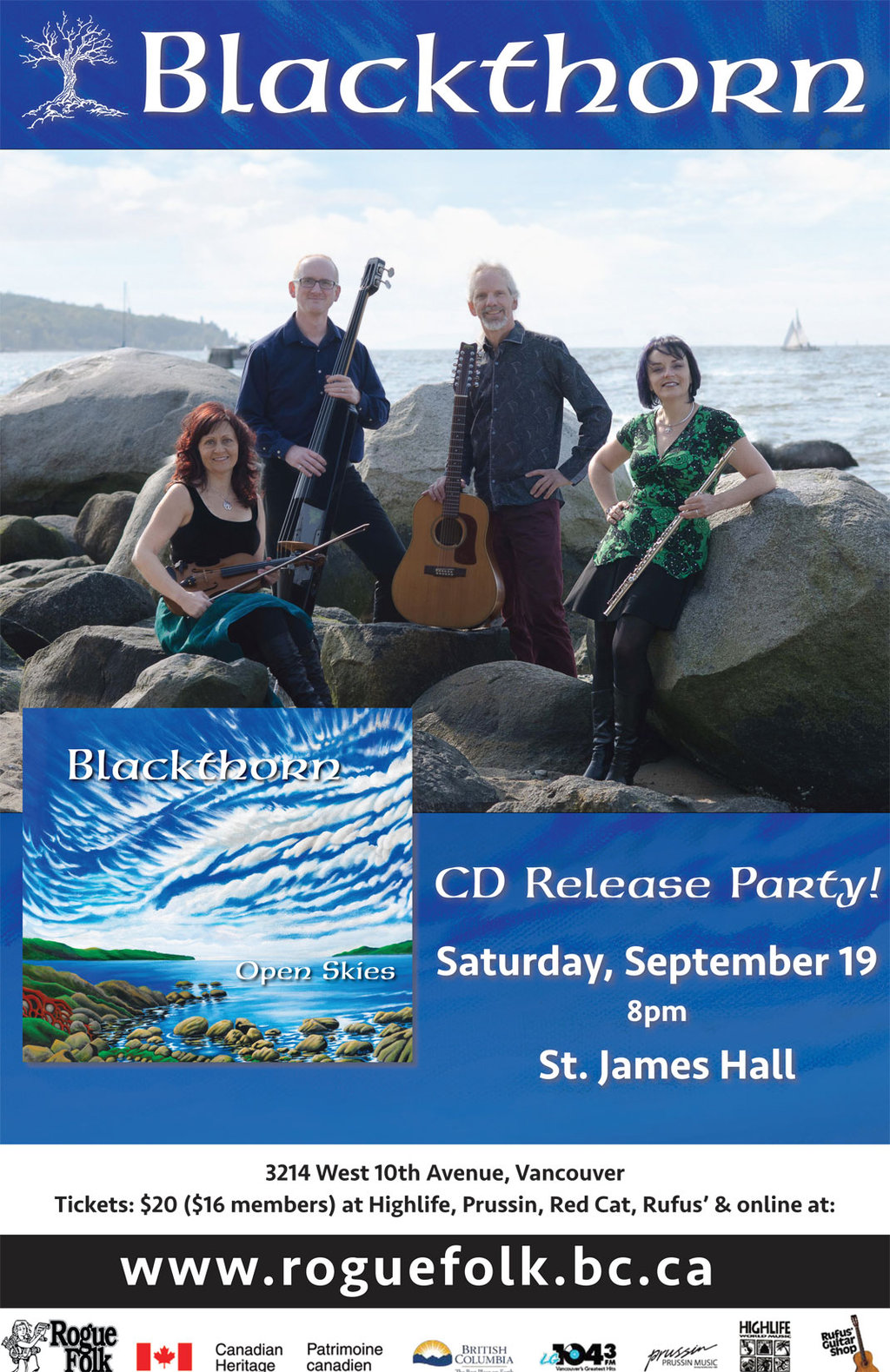 Physical tickets at: www.roguefolk.bc.ca, Rufus Guitar Shop, Highlife Records, Prussin Music Inc., Red Cat Records