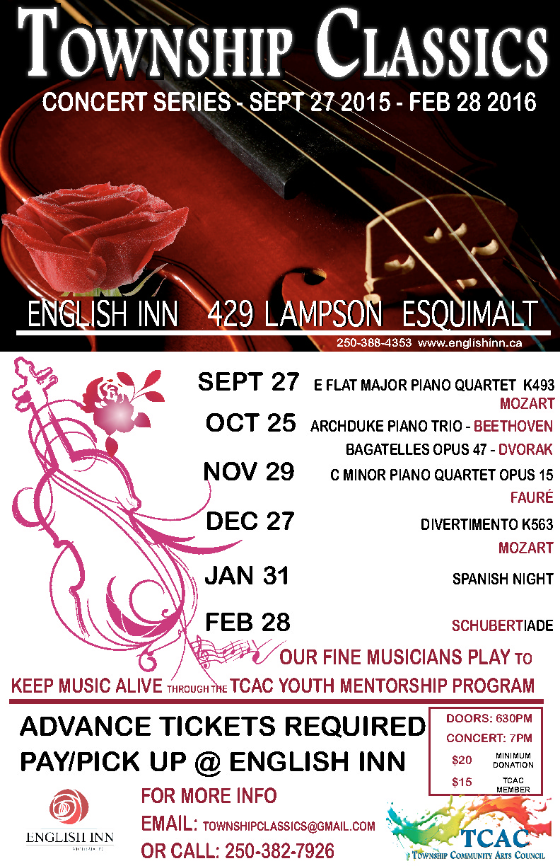 Donate and pick up your tickets in advance at the English Inn. $20 minimum donation or $15/TCAC Member