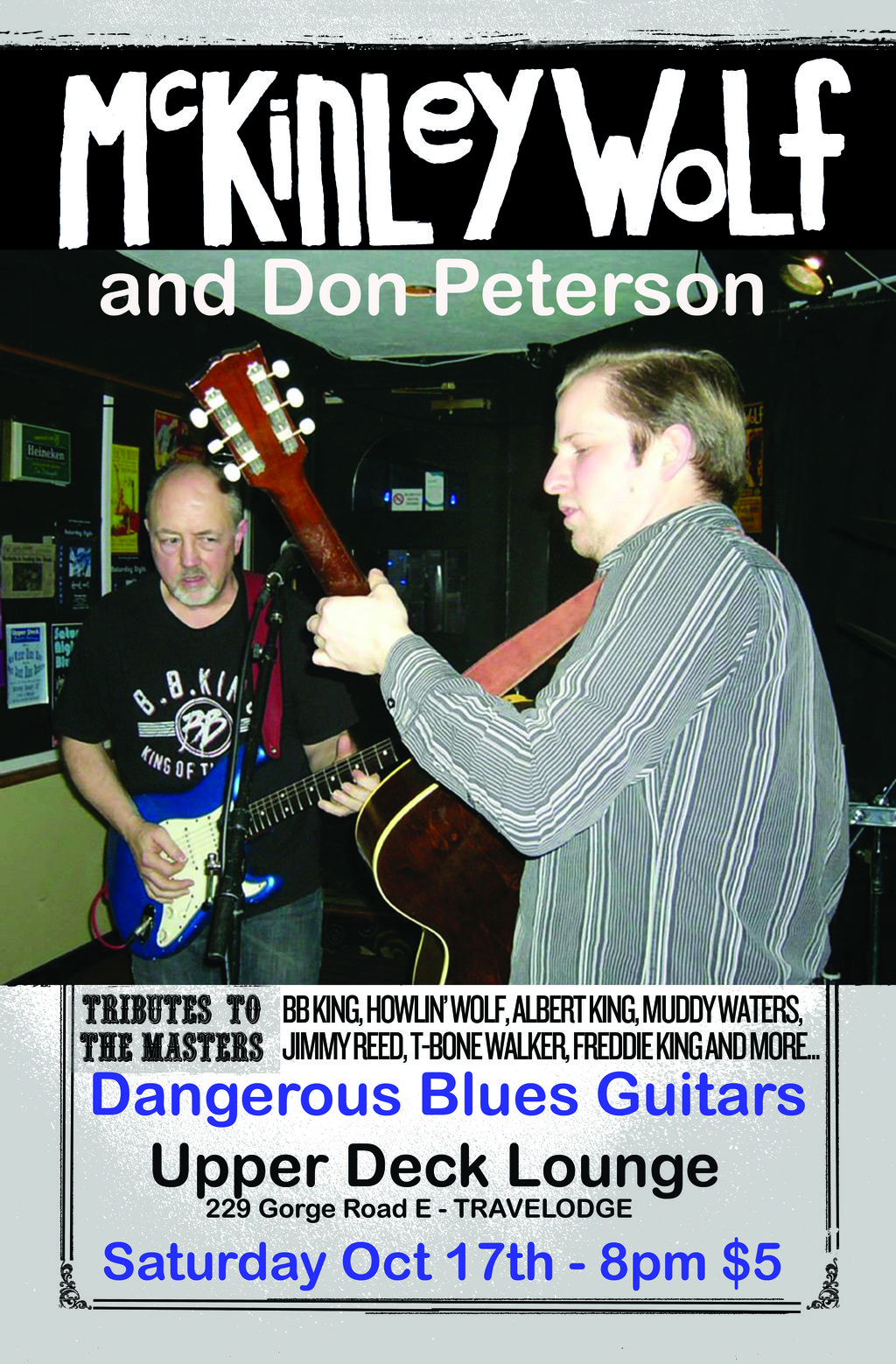 Dangerous Blues Guitars: McKinley Wolf, Don Peterson @ Upper Deck (in the Gorge Travelodge) Oct 17 2015 - Feb 4th @ Upper Deck (in the Gorge Travelodge)