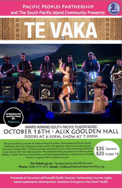 Tickets available: Tevakavictoria.eventbrite.com & Alcheringa Gallery, 665 Fort St & Pacific Peoples’ Partnership @3407, 620 View St. Victoria