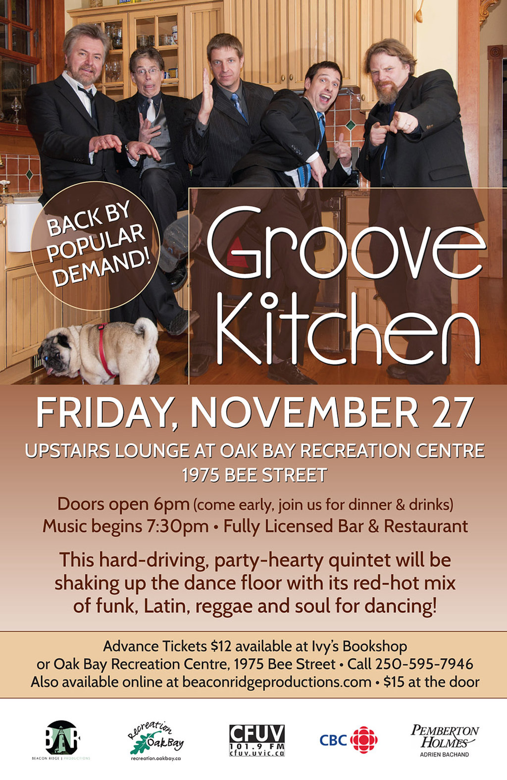 Get ready to boogie to the hot sounds of Groove Kitchen! This hard-driving, party-hearty quintet is shaking up the clubs with its red-hot mix of funk, Latin, reggae and soul for dancing!