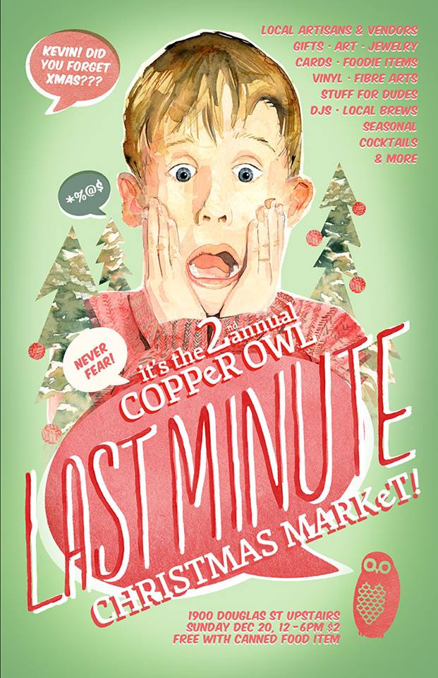 On Sunday December 20th we are hosting our second annual "Last Minute" Christmas Market & Party. Once again there will be a diverse lineup of vendors including a beer tasting station by Hoyne Brewery, original art, unique locally made gifts, foodie items, fibre arts, stuff for dudes (because we know they can be hard to buy for), vinyl records, and more! We will be serving seasonal cocktails (including hot toddies and rum & eggnog), delicious local brews, and there will be yummy snacks.