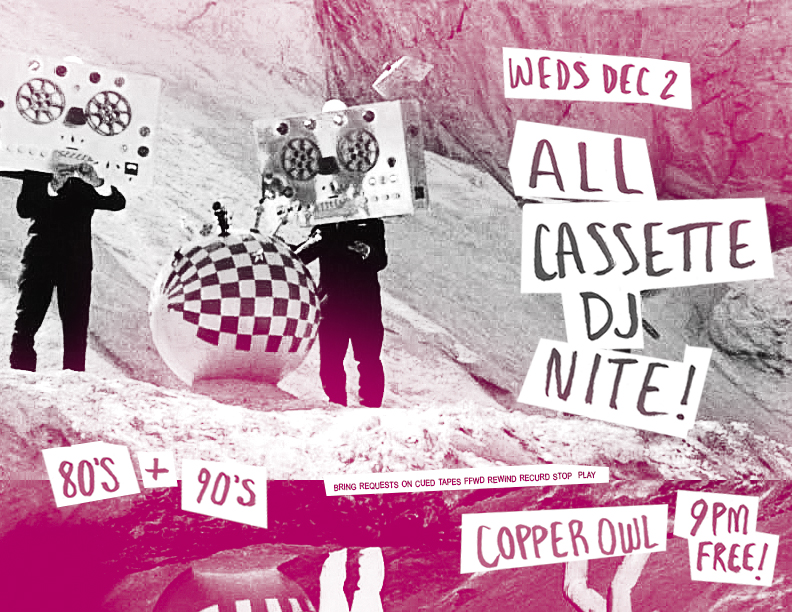 TAPE DJ PARTY All cassettes all night long, awesome hits and weird shits from the 80s & 90s by Aimée (The Backhomes) and Matt (Little Jungles) ...Got requests? Bring em on cued tapes!