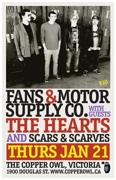 Fans & Motor Supply Co, The Hearts, Scars and Scarves @ Copper Owl Jan 21 2016 - Feb 5th @ Copper Owl