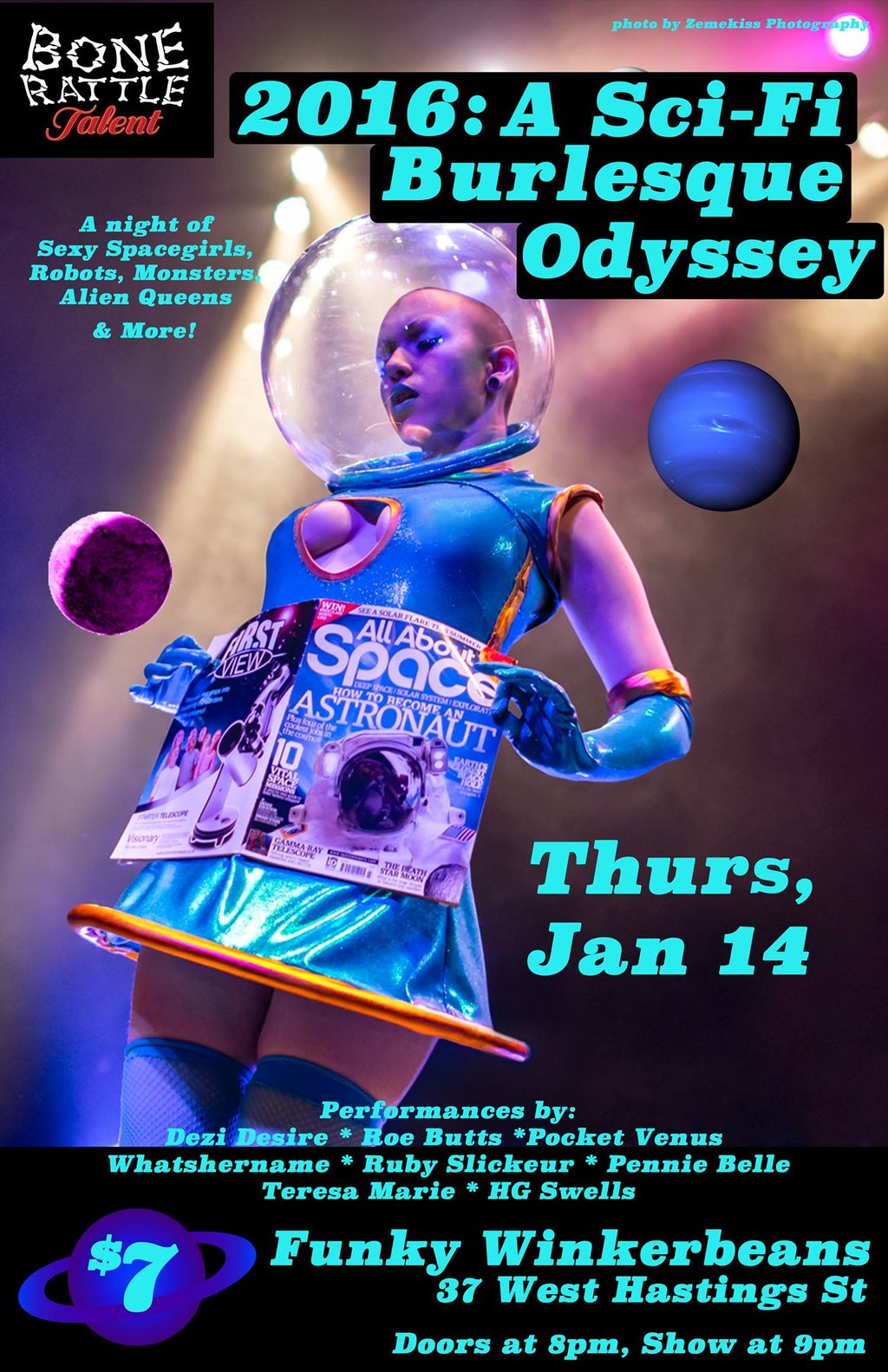 A SCI-FI SPACE  ODYSSEY~: BONERATTLE TALENT BURLESQUE @ Funky Winker Beans Jan 14 2016 - Feb 6th @ Funky Winker Beans