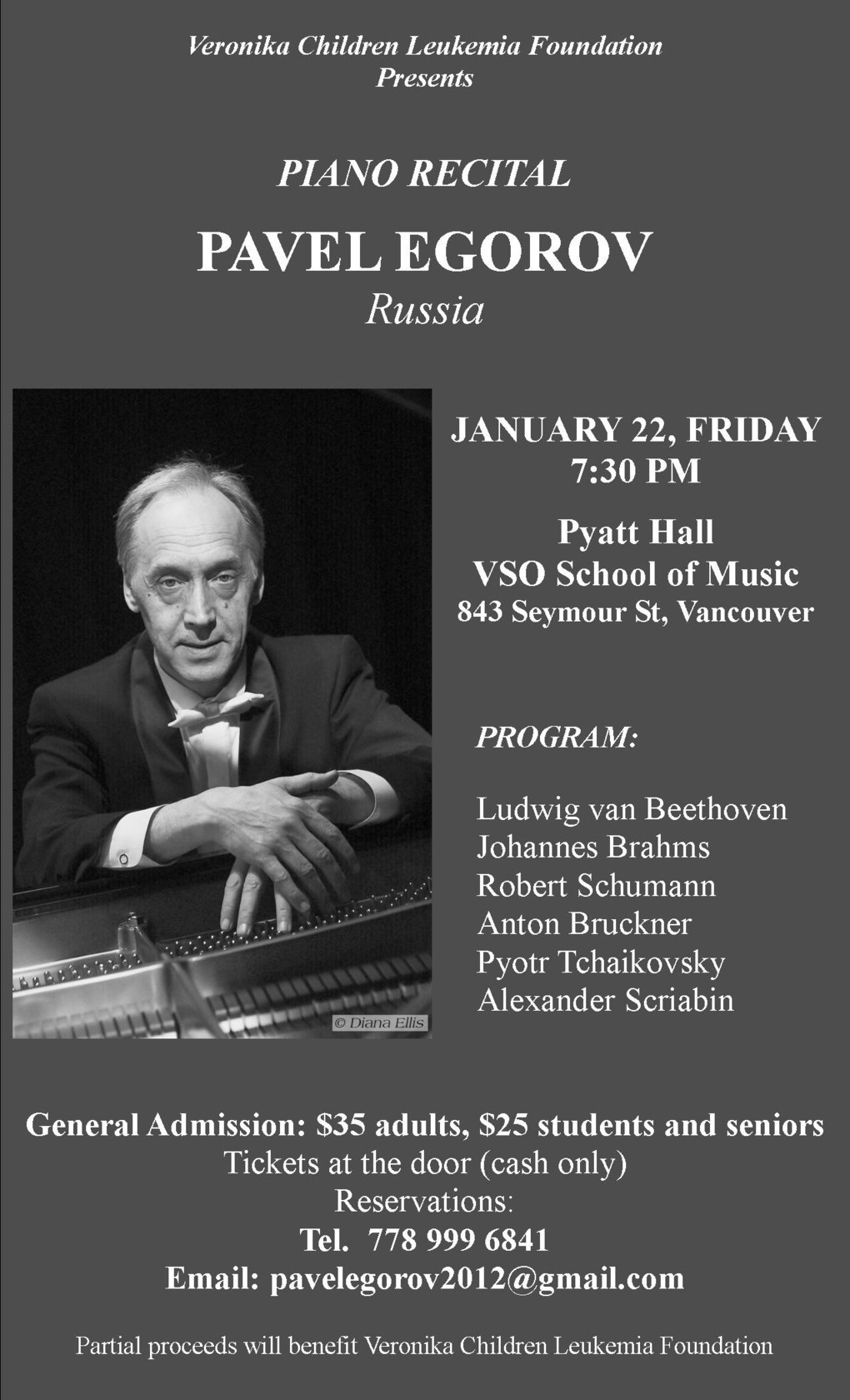 Tickets are $35 for adults, $25 for seniors/students, will be available at the door (cash only, please) and can be reserved by phone: 778 999 6841 or via email: [email protected] (reservation is recommended).