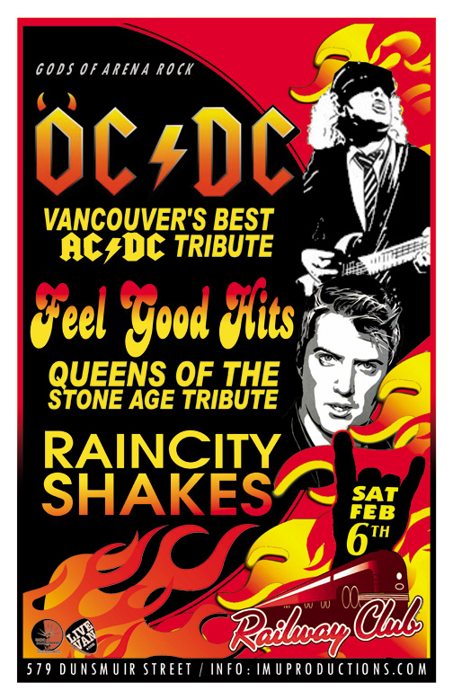 . Saturday, February 6th IMU presents OC/DC Vancouver's best AC/DC Tribute, FEEL GOOD HITS Queens Of The Stone Age Tribute & RAINCITY SHAKES @ The Railway Club, 579 Dunsmuir . Show 9:30pm / $10 cover