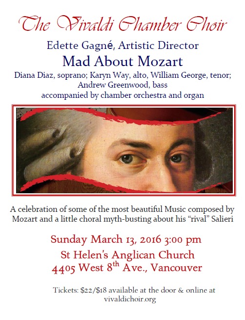 We will be exploring highlights from the prolific catalogue of Wolfgang Amadeus Mozart, while we do our own musical-myth-busting about his relationship with Antonio Salieri. This concert presents some of Wolfgang Amadeus' most beautiful anthems and sacred works culminating in a performance of the Coronation Mass K.317 (Krönungsmesse - Mass No.15) The choir will be accompanied by organ, or organ and strings and the Mass will benefit from the full panoply of the classical orchestra with the addition of winds, brass and timpani.