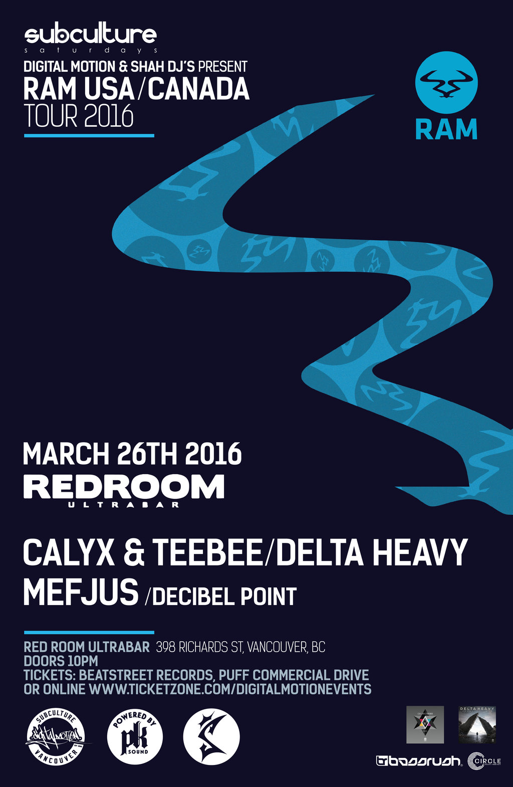 Ram Tour 2016 feat Calyx & Teebee - Delta Heavy - Mefjus at #SUBcultu @ The Red Room Mar 26 2016 - Dec 23rd @ The Red Room