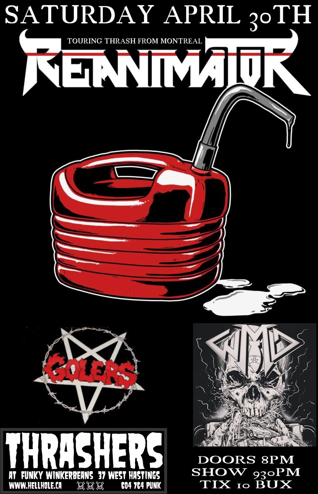 SAT APR 30 * NO BOLLOCKS PRESENTS * REANIMATOR [MTL THRASH] * THE GOLERS * W.M.D. [CGY] *