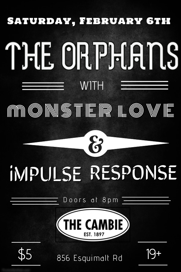 The Orphans, Monster Love, Impulse Response @ The Cambie at the  Esquimalt Inn Feb 6 2016 - Feb 4th @ The Cambie at the  Esquimalt Inn