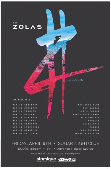 Anyone who caught on to the slow-­‐burn success of2 01 2's desolately hook-­‐laden Ancient Mars could sense that something in The Zolas was threatening to bubble over, and after a year of recording, their upcoming record shows an alternative pop collaboration at the top of their creative game. Original members Tom Dobrzanski and Zach Gray have been joined by another longtime duo Cody Hiles and DJ Abell and this is the first album they've completely self-­‐produced at Dobrzanski's Monarch Studios in Vancouver.