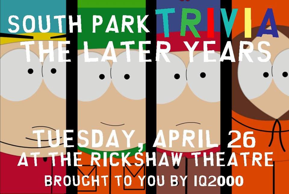 South Park Trivia Night @ Rickshaw Theatre Apr 26 2016 - Dec 22nd @ Rickshaw Theatre