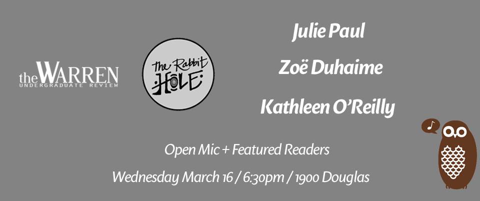 The Rabbit Hole with: Zoe Duhaime , Kathleen O'Reilly, Julie Paul  @ Copper Owl Mar 16 2016 - Feb 7th @ Copper Owl