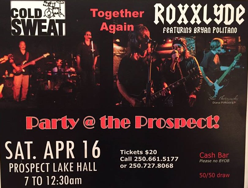 Party @ The Prospect: Cold Sweat, Roxxlyde @ Prospect Lake Hall Apr 16 2016 - Feb 5th @ Prospect Lake Hall