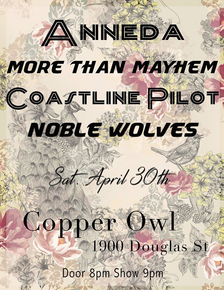 Noble Wolves, Coastline Pilot, More Than Mayhem, Anneda @ Copper Owl Apr 30 2016 - Feb 6th @ Copper Owl