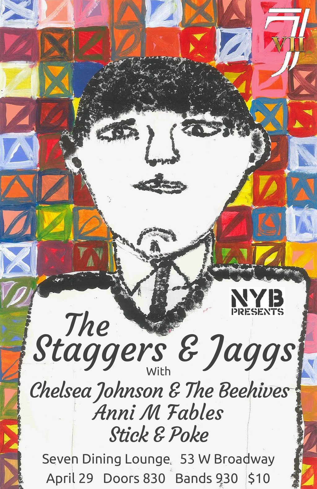 Staggers & Jaggs, Chelsea Johnson & The Beehives, Anni M Fables, Stick & Poke @ Seven Dining Lounge Apr 29 2016 - Feb 6th @ Seven Dining Lounge