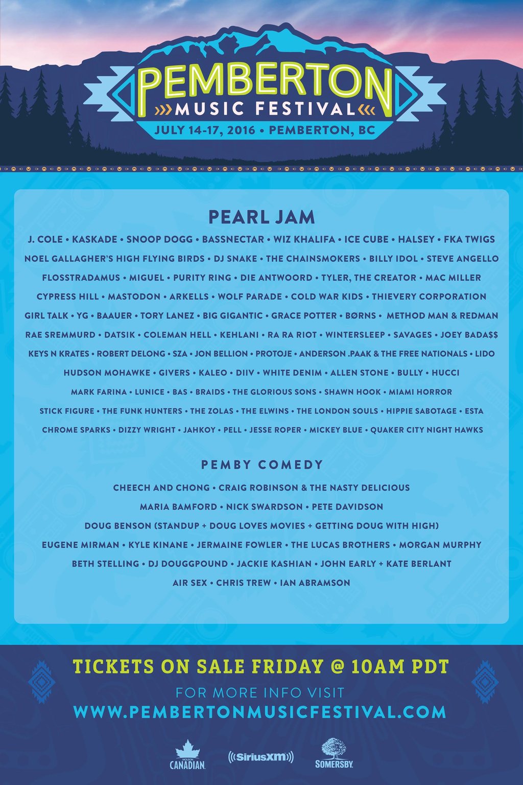 Jesse Roper, Pearl Jam, Snoop Dogg, Wolf Parade @ Pemberton Festival Jul 16 2016 - Feb 6th @ Pemberton Festival