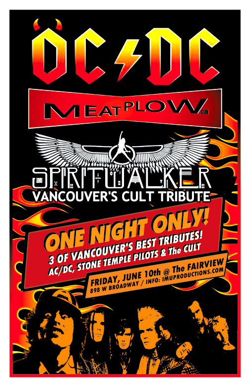 . Friday, June 10th IMU presents OC/DC Vancouver's best AC/DC Tribute, MEATPLOW Stone Temple Pilots Tribute & SPIRITWALKER Cult Tribute @ The Fairview, 898 West Broadway . Show 9:30pm / $10 cover