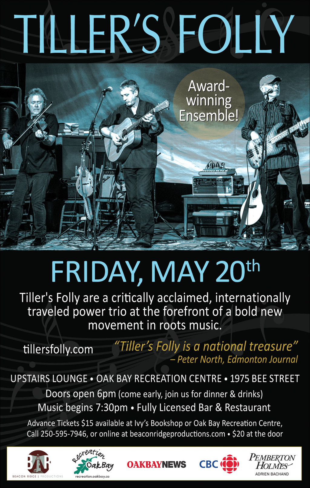 Physical tickets at: Ivy's Bookshop, Oak Bay Rec Centre