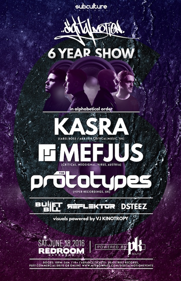Digital Motion Events 6 YEAR show at #SUBcultureSaturdays: Kasra , Mefjus, THE PROTOTYPES