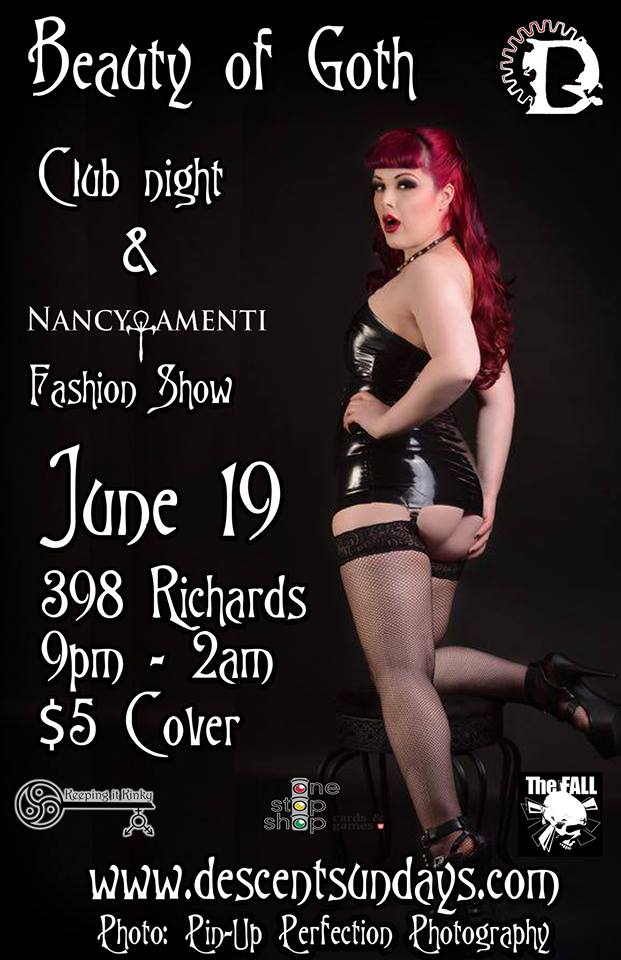 Fashion is a large cornerstone for those interested in Goth culture and one of the main things that binds us together as a community with a quick glance. There are many different types of Goth trends that have emerged over the years and this gives us lots of room to play with how we express our identity. With this event we want to celebrate Gothic style and what better way to do that than by teaming up with talented local desginers? Nancy Amenti is a creative and and brilliant Vancouver designer with an eye on alternative fashion. She will be joining us to showcase some gowns, lingerie and party dresses in a fantastic fashion show!