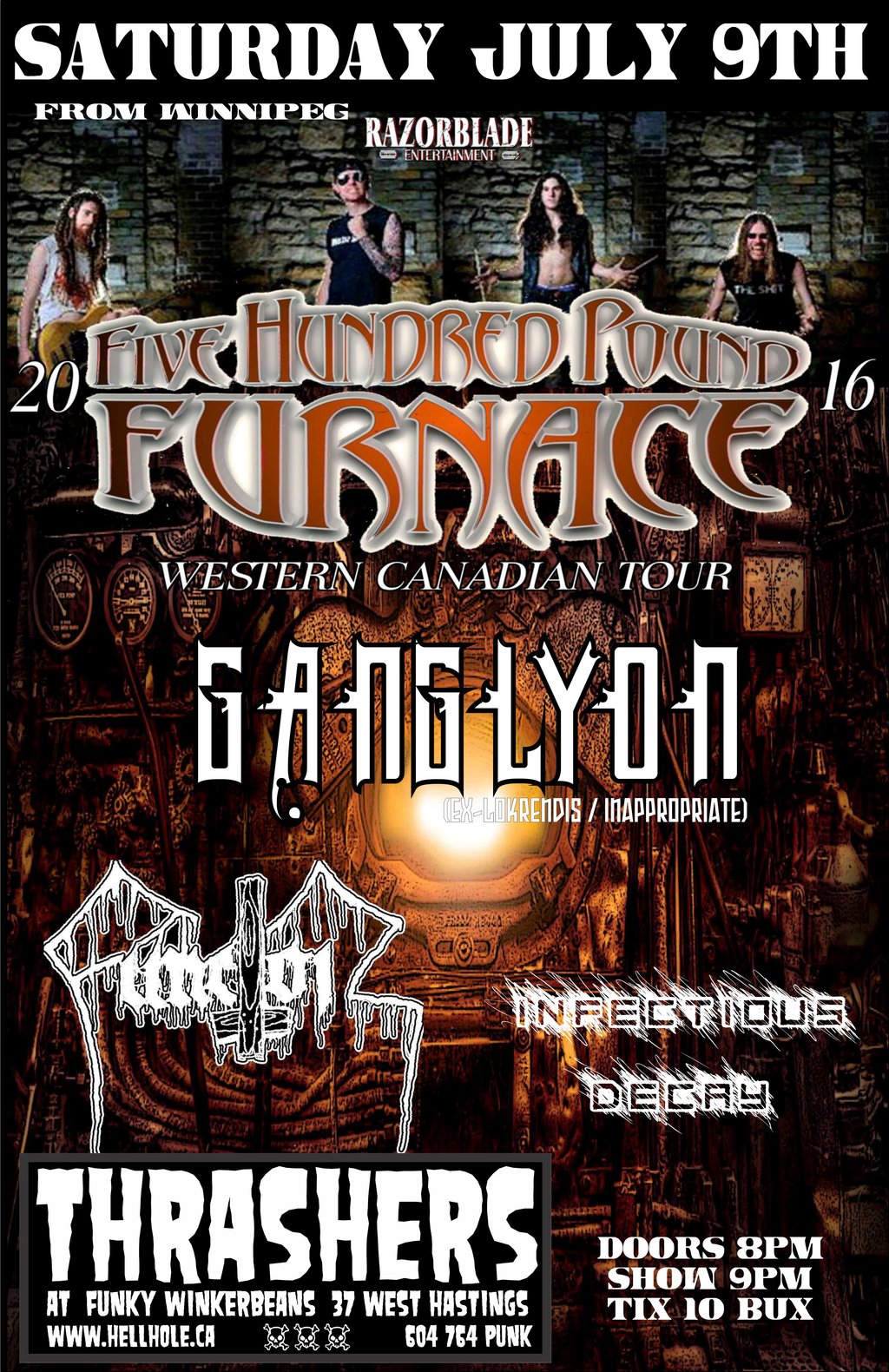 SAT JULY 9 * TOURING METAL WITH * FIVE HUNDRED POUND FURNACE [WPG] * GANGLYON * FUNCTOR * INFECTIOUS DECAY *