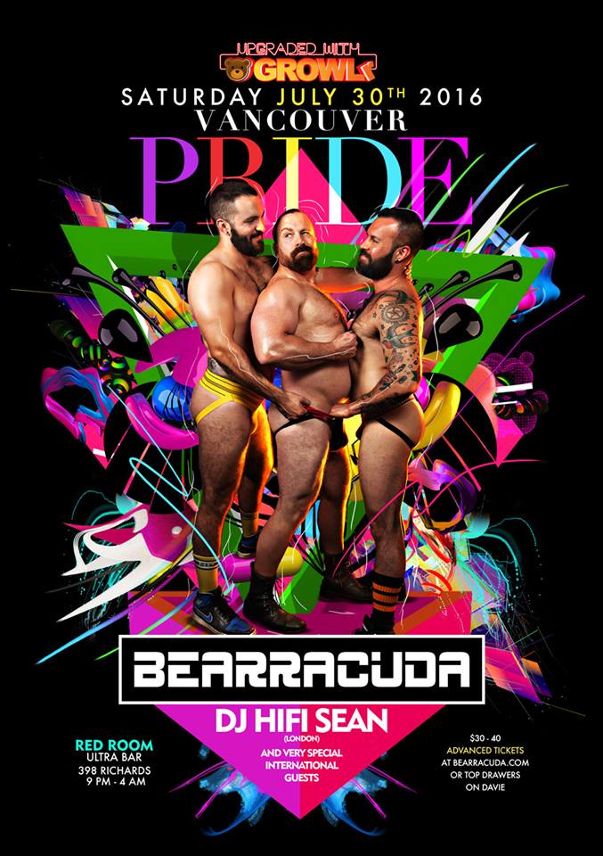 **Adv tix sales have ended, tix available at the door. Tix still available for SUNDAY here: http://bearracuda.com/vancouver-pride-sunday/***
