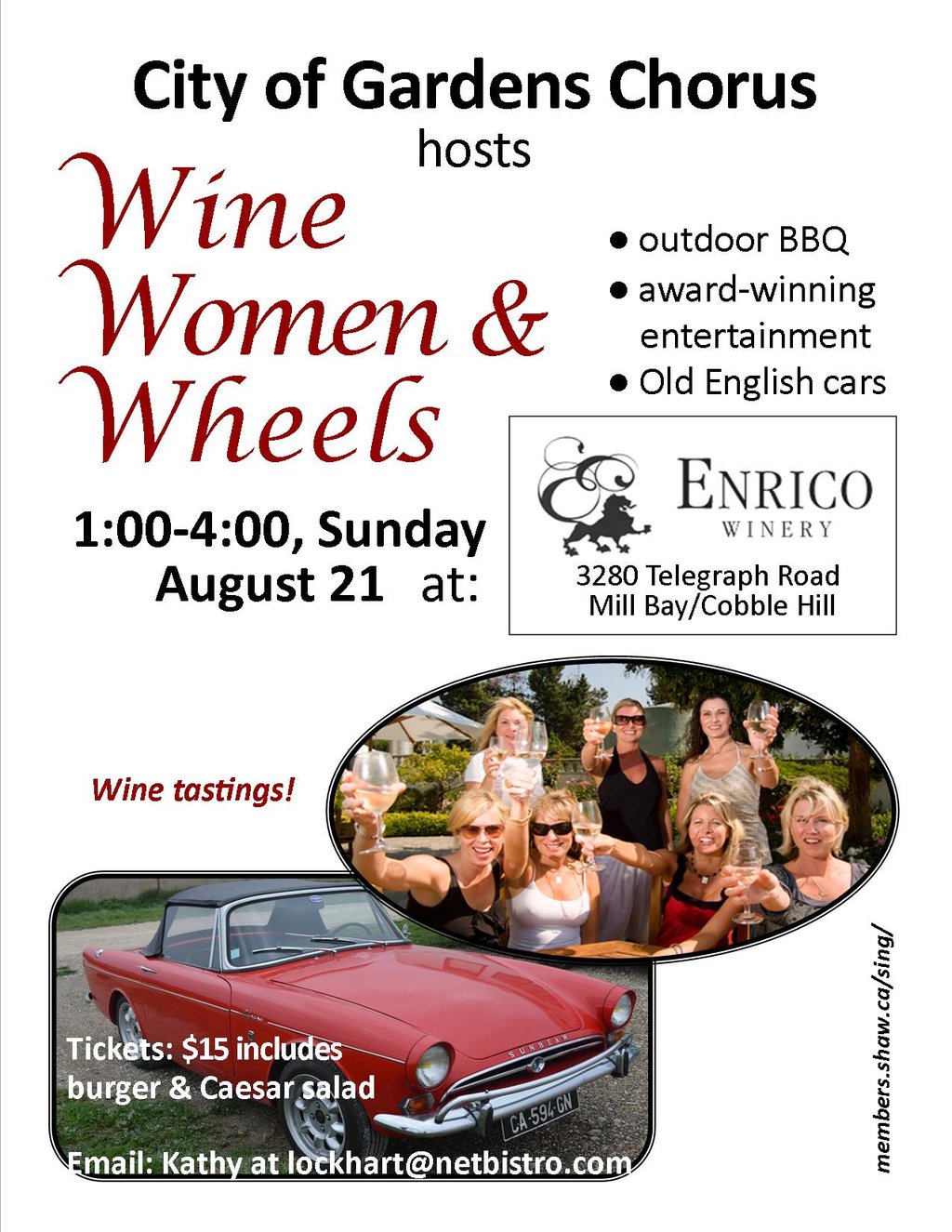 Join CITY OF GARDENS CHORUS and members of the Central and South Island OLD ENGLISH CAR CLUBs at ENRICO WINERY's family vineyard, 3280 Telegraph Road, Mill Bay/Cobble Hill.