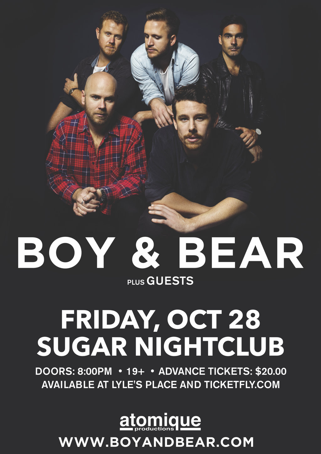 Boy & Bear,  Cobi @ Capital Ballroom Oct 28 2016 - Dec 22nd @ Capital Ballroom