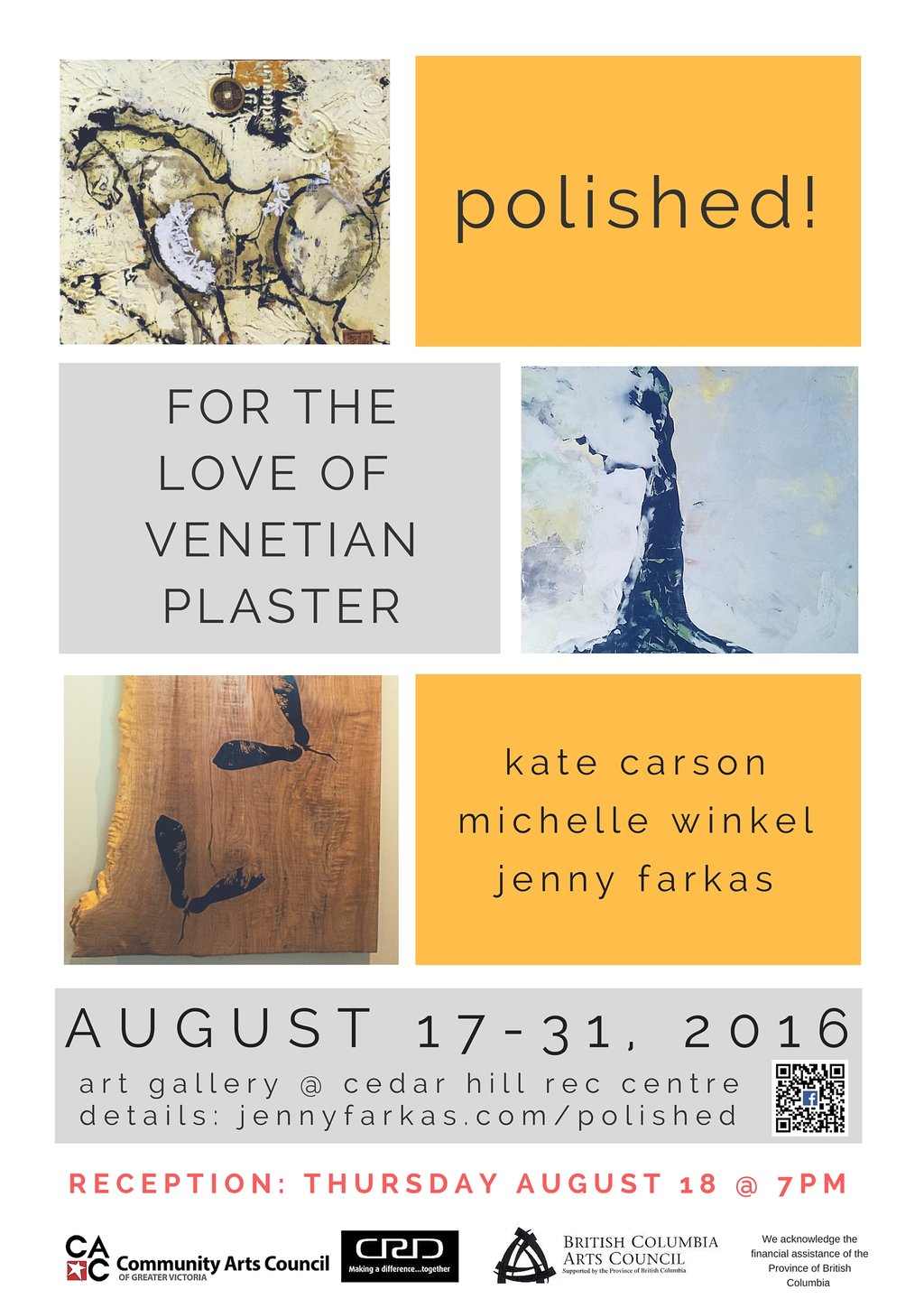 Kate Carson, Michelle Winkel and Jenny Farkas are united in a love for venetian plaster (an ancient medium made from crushed marble and lime putty) and want to share our fascination with others. Each of us makes use of its properties in unique and distinct ways, and it rewards us by adding beauty, glow and depth to our pieces.