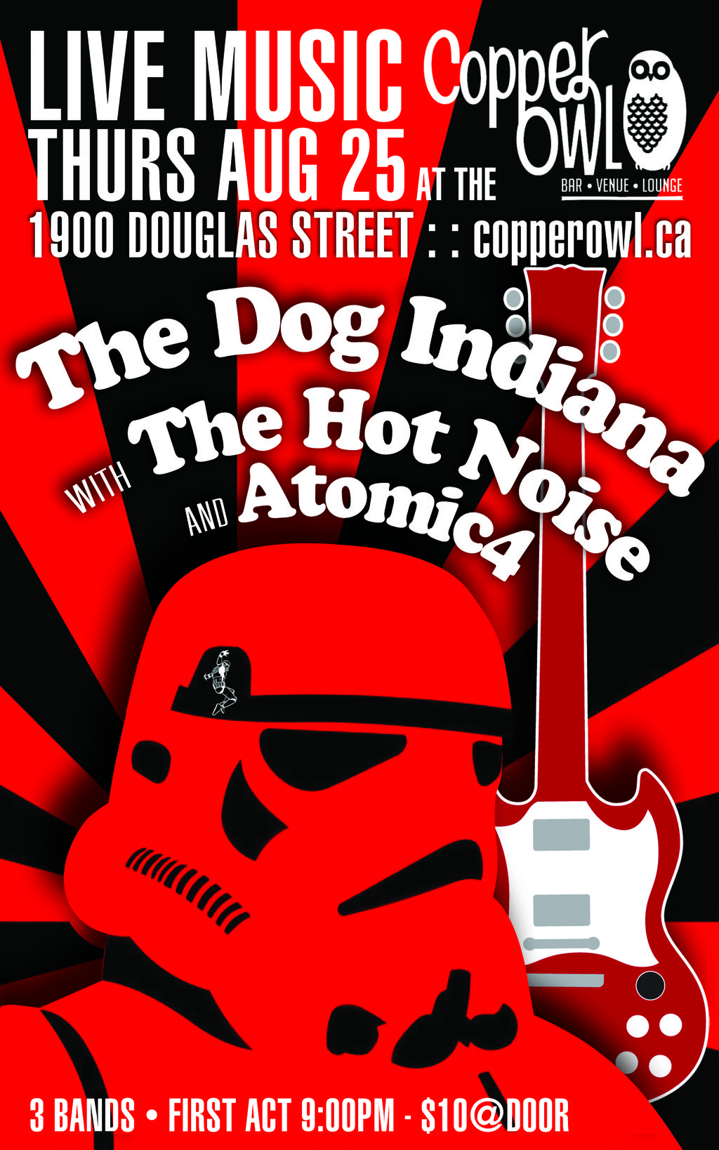 High energy 3 band line up featuring The Dog Indiana with The Hot Noise and Atomic4!