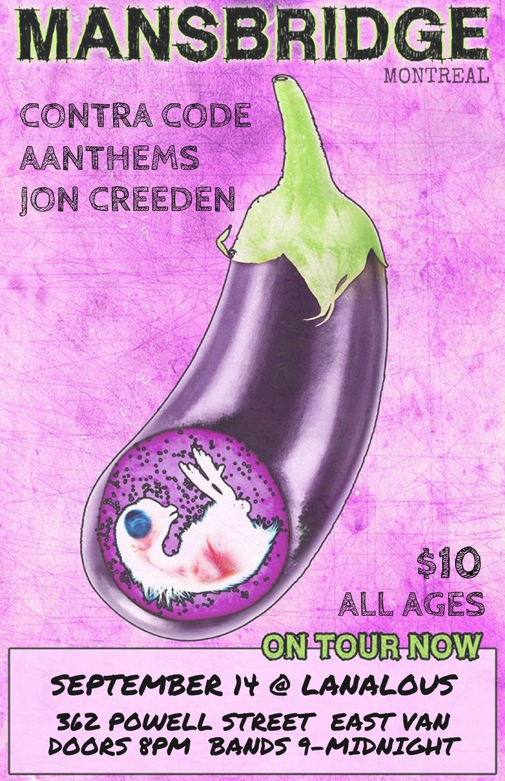 Montreal's political pop punkers Mansbridge, are finally making it out west and will be in East Van for a mid-week melee down at LanaLou's Wednesday September 14th with ass kicking local's Contra Code and Aanthems. plus the incredible Jon Creeden out of Ottawa will be kicking it off! hot damn, this will be all kinds of wonderful friends!