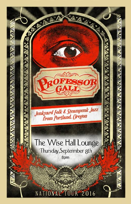 A Tincture of Junkyard Folk and Steampunk Jazz'. Professor Gall seeks to uncover the contradictions of an ambiguous and native-less society, 'dreaming the existentialists' dream', while at the same time pleading for individualism, peace, and more fun at funerals.