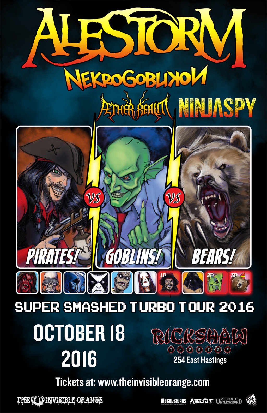 Alestorm, Nekrogoblikon, Aether Realm, Ninjaspy @ Rickshaw Theatre Oct 18 2016 - Feb 7th @ Rickshaw Theatre