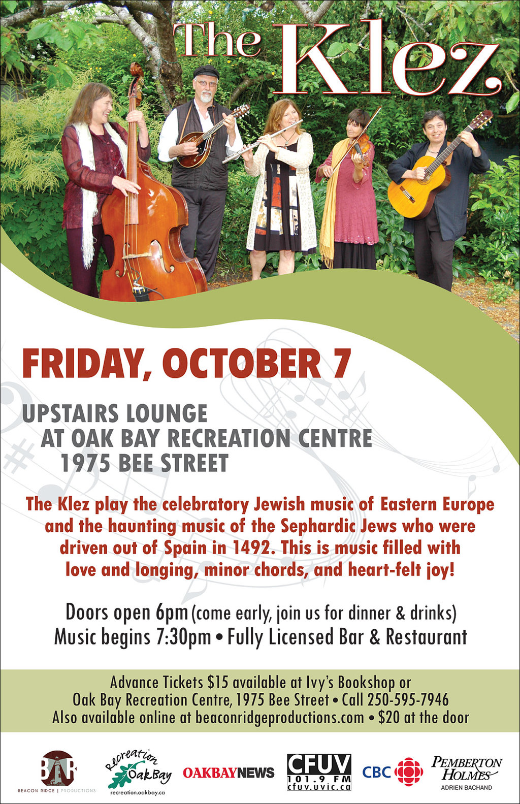 Advance tickets available at Ivy's Bookshop and at the Oak Bay Recreation Centre Reception