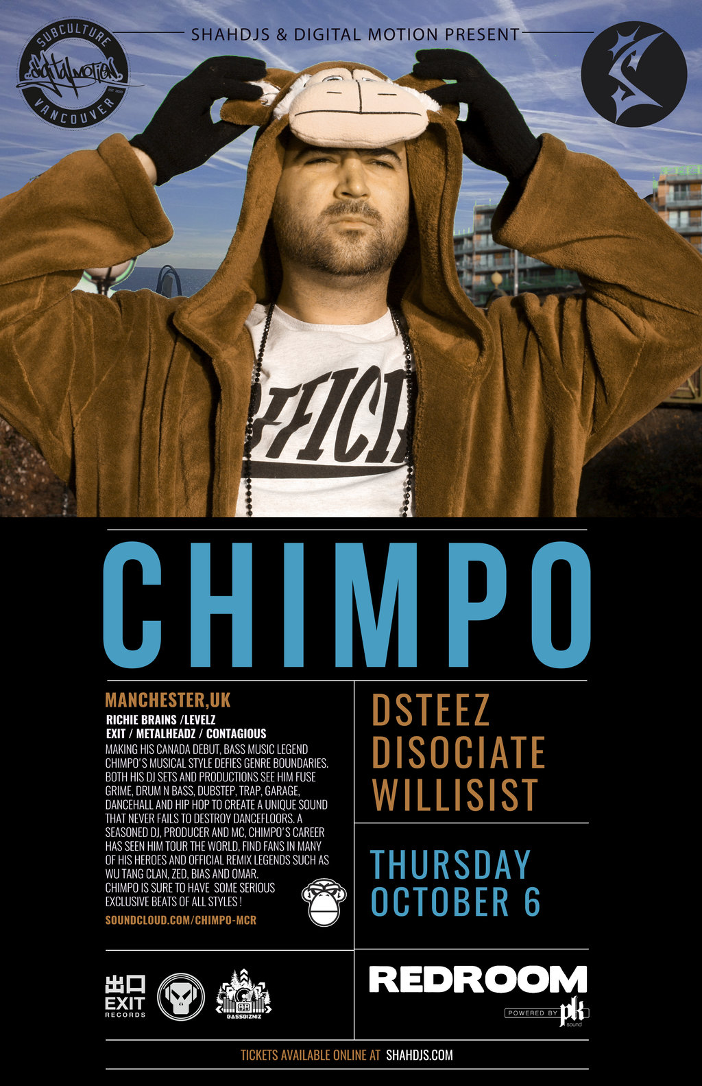Chimpo  (Vancouver debut), Richie Brains, Levelz, MetalHeadz @ The Red Room Oct 6 2016 - Nov 8th @ The Red Room